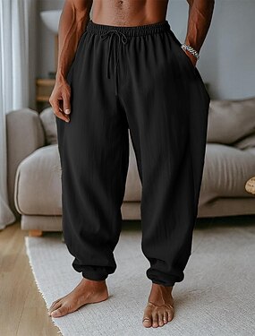 Per uomo Pantaloni di lino Pantaloni Pantaloni da spiaggia Tasche A cordoncino Liscio Comfort Traspirante Interni Giornaliero Moda Classico Nero Bianco Media elasticità