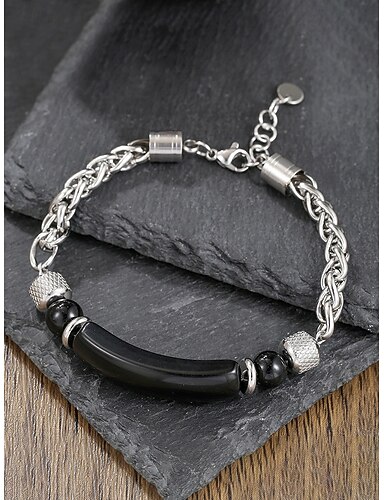Bracciale da uomo bohémien in acciaio al titanio e pietre naturali, bracciale a catena con perline multicolore per vacanze al mare, outfit estivi casual e per tutti i giorni.