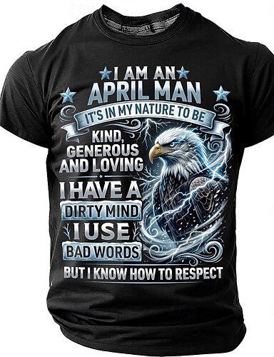 "Sono un uomo di aprile" divertente umorismo sarcastico per adulti maglietta grafica compleanno uomo gentile generoso amorevole aquila calva girocollo manica corta regalo per marito papà verde acqua