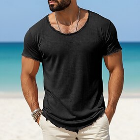 Per uomo Maglietta Maglietta in lino Maniche Corte Girocollo Estate Semplice Moda Designer Essenziale Vintage ▾ Morbido Puro Casuale Vacanza Streetwear Blu chiaro Nero Bianco Maglietta Top per Uomo