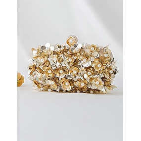 Pochette da sera da donna con paillettes e fiori, borsetta da festa floreale in poliestere con tracolla a catena in vari colori per matrimoni, banchetti, eventi formali e cocktail party