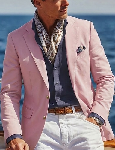 Per uomo Giacca blazer Blazer di Lino Colletto ad incastro Classico Tinta unita Blazer Blazer in lino Bianco Rosa Azzurro cielo Vestibilità su misura Monopetto Due Bottoni