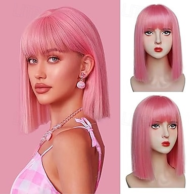 parrucca rosa per donna parrucca rosa bob con frangia, parrucche rosa chiaro corte e ondulate per costume cosplay