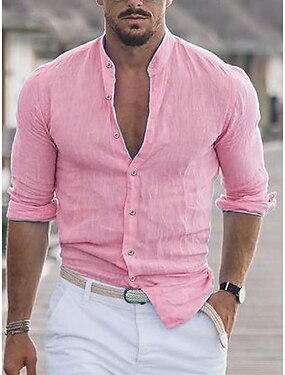 Per uomo Camicia camicia di lino Camicia con colletto a fascia Camicia estiva Abbigliamento mare Maglietta informale Informale Giornaliero Nero Bianco Rosa Blu Manica lunga Colletto Mao Primavera