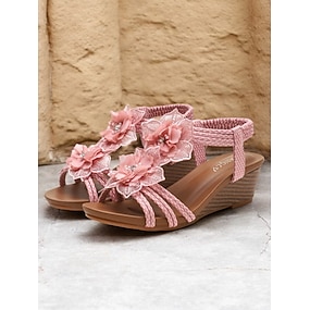 sandali con zeppa intrecciati in stile bohémien marrone da donna con decorazioni floreali - comodi sandali estivi per la spiaggia e le uscite casual