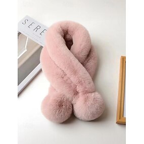 sciarpa natalizia da donna in pelliccia sintetica di coniglio con pompon, accessorio invernale morbido e accogliente per feste e regali