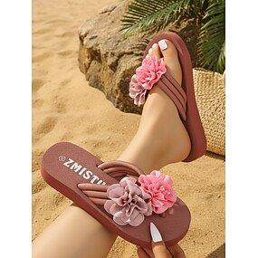 infradito da donna con fiori rosa applicati e applicazione di fiori 3D: graziosi sandali infradito con plateau per le vacanze al mare, i viaggi estivi e a bordo piscina
