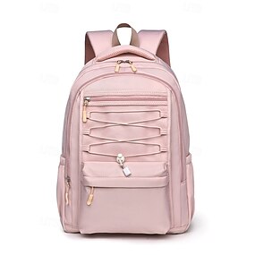 Zaino scolastico unisex in nylon tinta unita con design multitasche: zaino leggero e dallo stile minimalista per adolescenti e studenti universitari