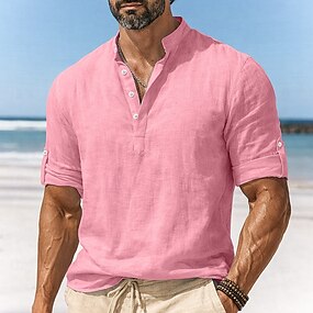 Per uomo Camicia di lino Camicia popover Camicia casual Camicia da Spiaggia Camicia con colletto alla coreana Semplice Casuale Spiaggia Blu Nero Bianco Rosa Manica Lunga Henley Estate Primavera
