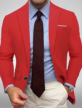 Per uomo Giacca blazer Collo a scialle Natale Festa Casual Tinta unita Blazer Giallo Rosso Viola Vestibilità aderente Vestibilità su misura Monopetto Un Bottone