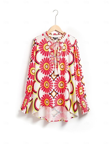 Per donna Chiffon Floreale Casuale Casual Quotidiano Manica a Pipistrello Rosso Orlo irregolare più alto basso Manica 3/4 Casual Quotidiano Colletto a Camicia Estate Primavera Primavera & Autunno