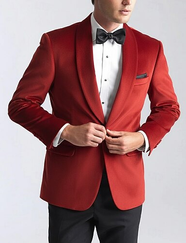 Per uomo Blazer di velluto Collo a scialle Natale Festa Casual Tinta unita Blazer di velluto Rosso Viola Vestibilità su misura Monopetto Un Bottone
