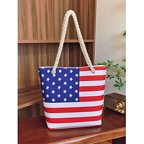 Borsa a spalla in tela con bandiera americana da donna per il 250° anniversario degli Stati Uniti grande borsa a zip con manici a corda per vacanze in spiaggia e uso quotidiano casual
