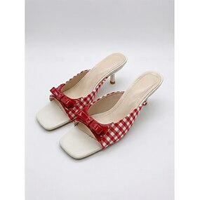 Sandali da donna con tacco a quadretti rossi e fiocco rosso in vernice – eleganti &scarpe comode per tutti i giorni e per le vacanze