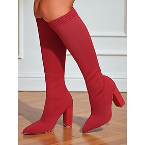 stivali alti fino al ginocchio da donna in maglia elasticizzata, con punta affilata e tacco spesso, per outfit alla moda autunnali e invernali, feste e look streetwear