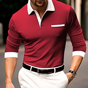 Per uomo Polo con bottoni POLO Informale Sport Bavero Manica lunga Di tendenza Essenziale Color Block Pulsante Primavera & Autunno Standard Rosso violaceo Bianco Blu Grigio scuro Polo con bottoni