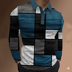 Per uomo Blocco di colori Astratto Polo Manica Lunga Magliette polo Bavero Casual All'aperto Streetwear Athleisure Abbigliamento quotidiano Stampa 3D Bottoni Primavera Autunno Inverno Blu Viola Verde
