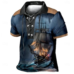 Per uomo Nave Polo Manica Corta Magliette polo Bavero Vintage Casual Abbigliamento casual alla moda Abbigliamento quotidiano Stampa 3D Tessuto retato traspirante Primavera & Estate Blu