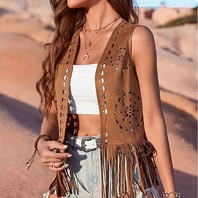 Retrò Vintage Boho Anni '70 Gilet in camoscio Senza maniche Hippie Frange Costume Per donna Carnevale Casual Quotidiano Parata dell'Orgoglio Mese dell'orgoglio Adulti Gilet Tutte le stagioni