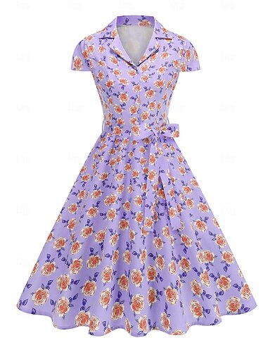 Anni 1950 Hepburn Retrò Vintage Midi Abito a Linea Abito Swing Vestito Svasato Maniche corte Floreale Linea ad A Costume Per donna Carnevale San Valentino Mascherata Vacanza Abbigliamento Quotidiano