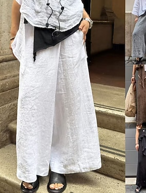 Per donna Pantaloni in cotone e lino Chinos Pantaloni Estivi Culotte Vacanza Streetwear Essenziale Lunghezza intera Vita media Semplice Tasca Fascia Elastica Comodo Comodità Inelastico Quotidiano