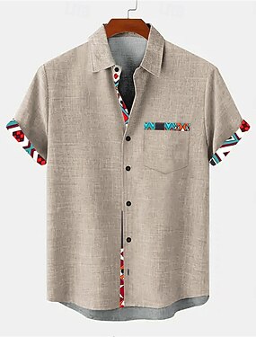 Per uomo Geometrico Camicia di lino Camicia Estiva Camicia con Bottoni Manica Corta Vintage Retrò Vacanza Ferie Abbigliamento mare Estate Primavera Collo ripiegato camicie con colletto Una tasca