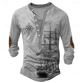 Per uomo Grafico Barca a vela Maglia Henley Maglietta Manica Lunga Vintage Moda Carino Casuale Ferie Uscire Primavera Primavera & Autunno Blu chiaro Viola Marrone Grigio Colletto Henley Henley
