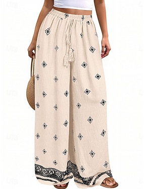 Per donna Finto cotone e lino Culotte Gamba Larga Chinos Pantaloni Estivi Vacanza Streetwear Casual Lunghezza intera Vita media Grafico Tasca Fascia Elastica Stampa Comodo Micro-elastico Quotidiano