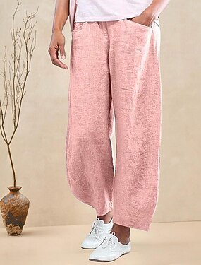 Per donna Finto cotone e lino Pantaloni Estivi Pantaloni Pantaloni Larghi Essenziale Casual Lounge Misura del girovita medio Tasche Laterali Baggy Quotidiano Ufficio San Valentino Rosa Rosso Blu