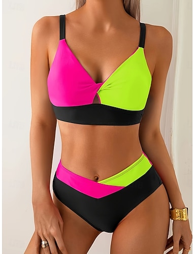 Per donna Costumi da bagno Bikini Due pezzi Birichino Costume da bagno Snello Senza schiena Vacanza Abbigliamento da Spiaggia Blocco di colori Scollo a V Senza Maniche Costumi da bagno