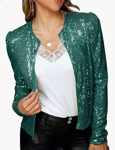 Cardigan Giacca da Donna Paillettes Sbrilluccichio Maniche Lunghe Aperta Slim Fit Giacca di Moda Primaverile Con Punto Aperto Di Colore Puro Per Festa Casual Moda Primavera Autunno
