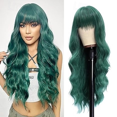 parrucca con frangia parrucche ricce per donna parrucca lunga ondulata parrucca sintetica colorata per festa cosplay uso quotidiano