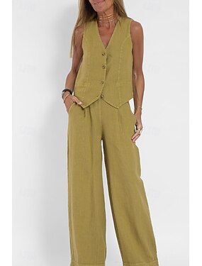 Per donna Set da due pezzi Blusa Set di Pantaloni Senza Maniche Scollo a V Tinta unica Dubbele Rij Knopen Attivo Essenziale Vacanza Casual Quotidiano Nero Bianco Vino Estate Vestibilità regolare