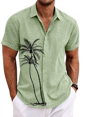 Per uomo Camicia camicia di lino Camicia da spiaggia Camicia hawaiana Albero di cocco Esterno Strada Nero Rosa Verde Grigio Maniche corte Collo ripiegabile Estate Primavera Abbigliamento Stampa