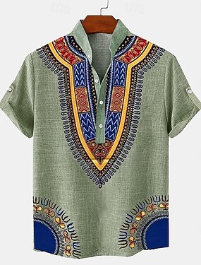 Per uomo camicia di lino Camicia Henley camicie retrò Camicia d'epoca Camicia etnica Da mare Giornaliero Verde Cachi Beige Manica corta Alla coreana Estate Primavera Abbigliamento Stampa 3D