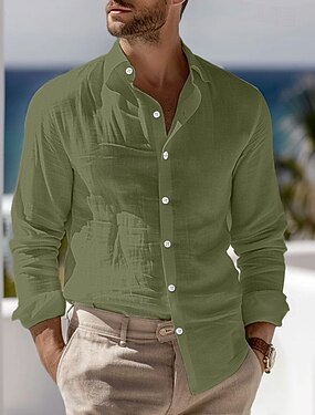 100% lino Tasche Per uomo camicia di lino Camicia Camicia con bottoni Camicia da spiaggia Nero Verde Manica lunga Liscio Bavero Primavera & Autunno Esterno Giornaliero Abbigliamento
