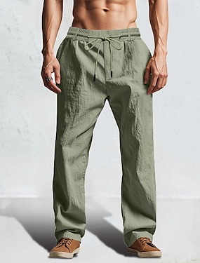 Per uomo Pantaloni di lino Pantaloni Pantaloni estivi Pantaloni da spiaggia A cordoncino Vita elastica Gamba dritta Liscio Comfort Traspirante Lunghezza intera Informale Giornaliero Per eventi Di