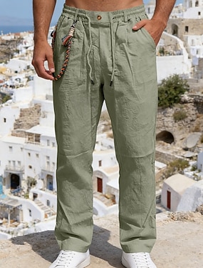 Per uomo Pantaloni di lino Pantaloni Pantaloni estivi Pantaloni da spiaggia A cordoncino Vita elastica Gamba dritta Liscio Comfort Traspirante Informale Giornaliero Per eventi Di tendenza Classico