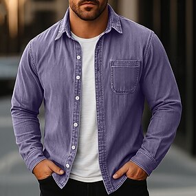 Per uomo Camicia Camicia casual Camicia vintage Camicia con Bottoni Nero Viola Marrone Grigio Manica Lunga Semplice Bavero Casual Casuale Tasca Abbigliamento Moda Retrò Vintage Casual