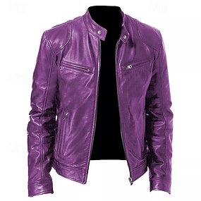 Per maschio Giacca in Ecopelle Giacca di transizione Giacca da Biker Abbigliamento da Esterno Casual Quotidiano Antivento Bottoni Autunno & Inverno Cerniera Casual Girocollo Regolare Finta pelle