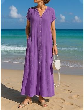Per donna Abito maxi 100% cotone Abito a Tubino Vestito Estivo Abito da Spiaggia Elegante Moda Moderno All'aperto Spiaggia Vacanza Vestibilità regolare Semplice Senza Maniche Girocollo Viola Marrone