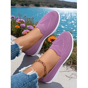 scarpe basse da donna pieghevoli in maglia viola con design traspirante - scarpe da viaggio leggere per attività casual e all'aperto