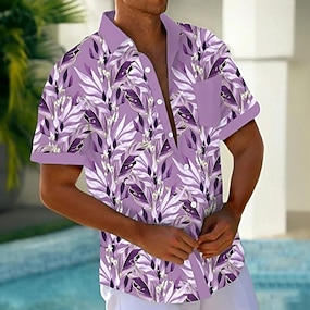 Per uomo Foglia di palma Piante Tropicali Camicia hawaiana estiva Camicia con Bottoni Camicia Aloha Manica Corta Hawaiano Casuale Vacanza Estate Primavera Collo ripiegato Stampa 3D camicie con