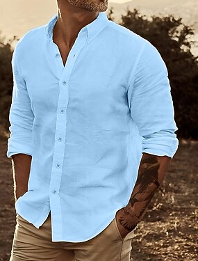 Per uomo Camicia di lino Camicia Estiva Abbigliamento da spiaggia Camicia casual Camicia con Bottoni Semplice Vacanza Casuale Giallo Chiaro Bianco Rosa Blu marino scuro Manica Lunga Primavera & Estate