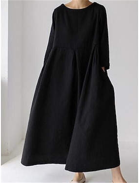 Per donna Abito maxi Finto cotone e lino Abito a Tubino Vestito Casual Abito estivo in cotone Essenziale Classico Casual Quotidiano All'aperto Vestibilità comoda Colore Puro Manica Lunga Girocollo