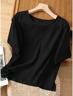 Per donna Maglietta Finto cotone e lino Semplice Moda Moderno Casual Manica Corta Girocollo Top Regolari Quotidiano Weekend Nero Bianco Giallo Marrone Beige Estate Primavera