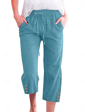 Per donna Pantaloni in cotone e lino Pantaloni Pantaloni casual Pantaloni Estivi Vacanza Moda Streetwear Lunghezza alla caviglia Vita Alta Semplice Tasca Elastico in vita Comodità Confortevole