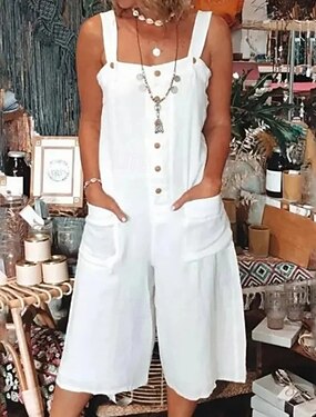 Per donna Normale Pagliaccetto Casual Tinta unica Senza Maniche Collo a U Tasca Bottoni Streetwear Uscire Vestibilità regolare Blu Bianco Rosa Estate