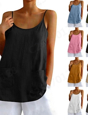 Per donna Canotta Camicia in finto lino Tasca Semplice Moda Elegante Classico Senza Maniche Girocollo Top Regolari Quotidiano Uscire Weekend Blu Nero Bianco Giallo Rosa Estate Primavera