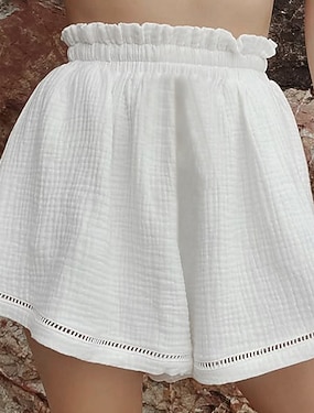 Per donna Shorts Pantaloncini Estivi Shorts da Spiaggia Pantaloncini di cotone Vacanza Moda Essenziale Corto Vita Alta Tinta unica Semplice Patchwork Gamba larga Fascia Elastica Comodità Morbido